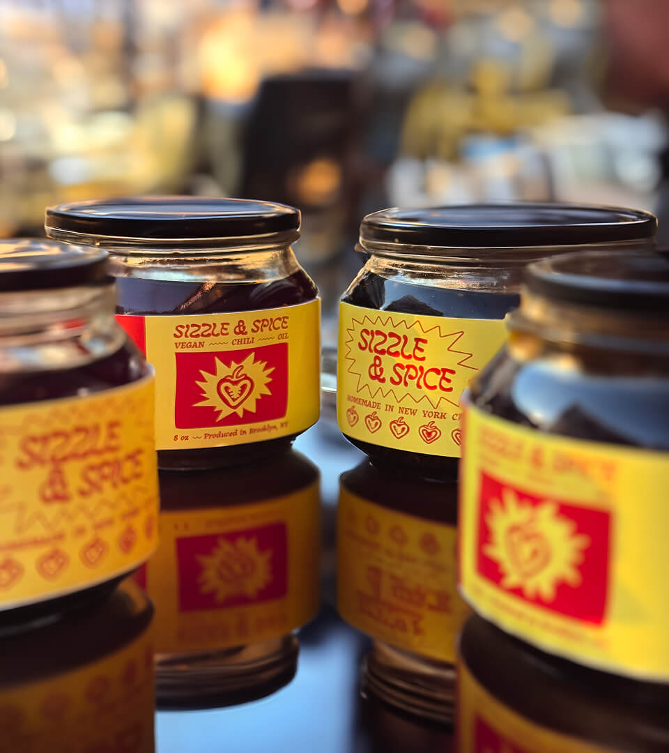Sizzle & Spice is an artisanal Brooklyn-based brand specializing in handcrafted Asian chili oils made with vegan ingredients. The brand currently operates exclusively within New York City, with products available at local farmers markets and neighborhood shops.